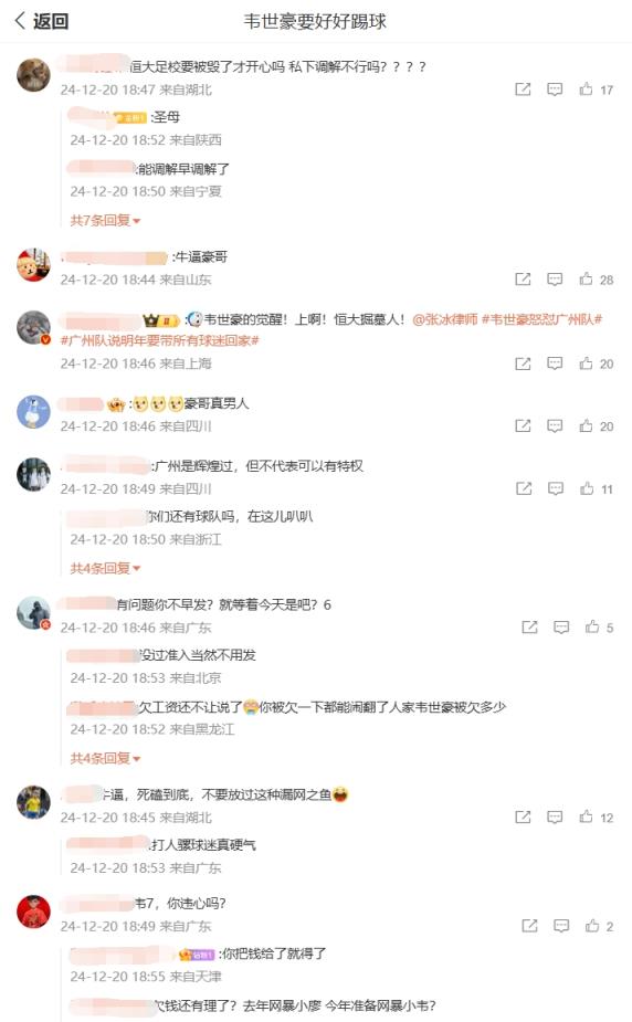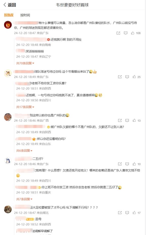 你怎么看?韋世豪微博評(píng)論區(qū)兩種聲音:廣州待你不薄vs欠債還錢